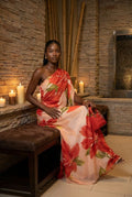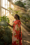 - Premium Floral Print: Large-scale red blossoms provide a vibrant, artistic aesthetic against a soft peach backdrop.